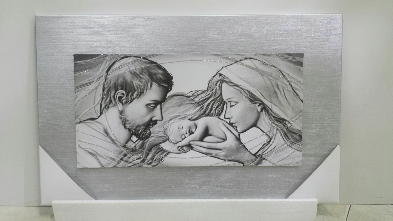 QUADRO SACRA FAMIGLIA CAPEZZALE DIPINTO SU TELA LEGNO DECORO ARGENTO ARREDO CASA