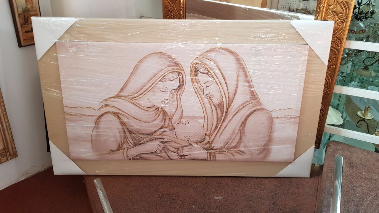 QUADRO SACRA FAMIGLIA CAPEZZALE STAMPA SU TELA LEGNO DECORO AVORIO ARREDO CASA