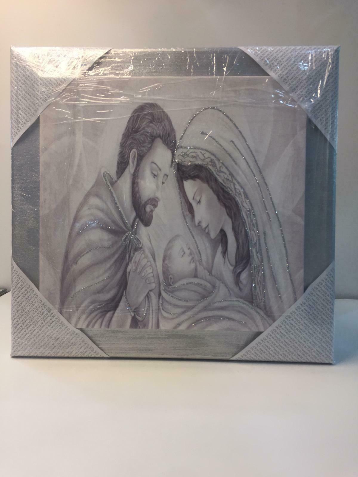 QUADRO SACRA FAMIGLIA CON CORNICE COLOR ARGENTO E GLITTER 50×48 cm