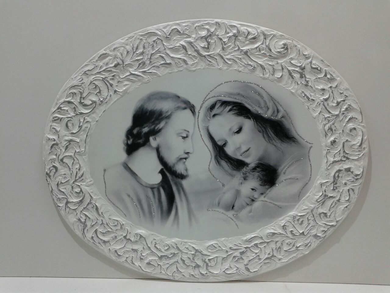 QUADRO SACRA FAMIGLIA DA PARETE IN LEGNO CRISTALLI E GLITTER ARREDO CASA SALA