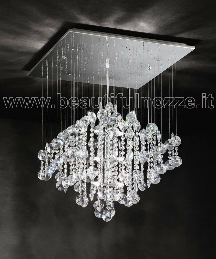 ROTONDO PLAFONIERA QUADRATA STRUTTURA IN METALLO E ROMBOIDE DI CRISTALLI 9 LUCI