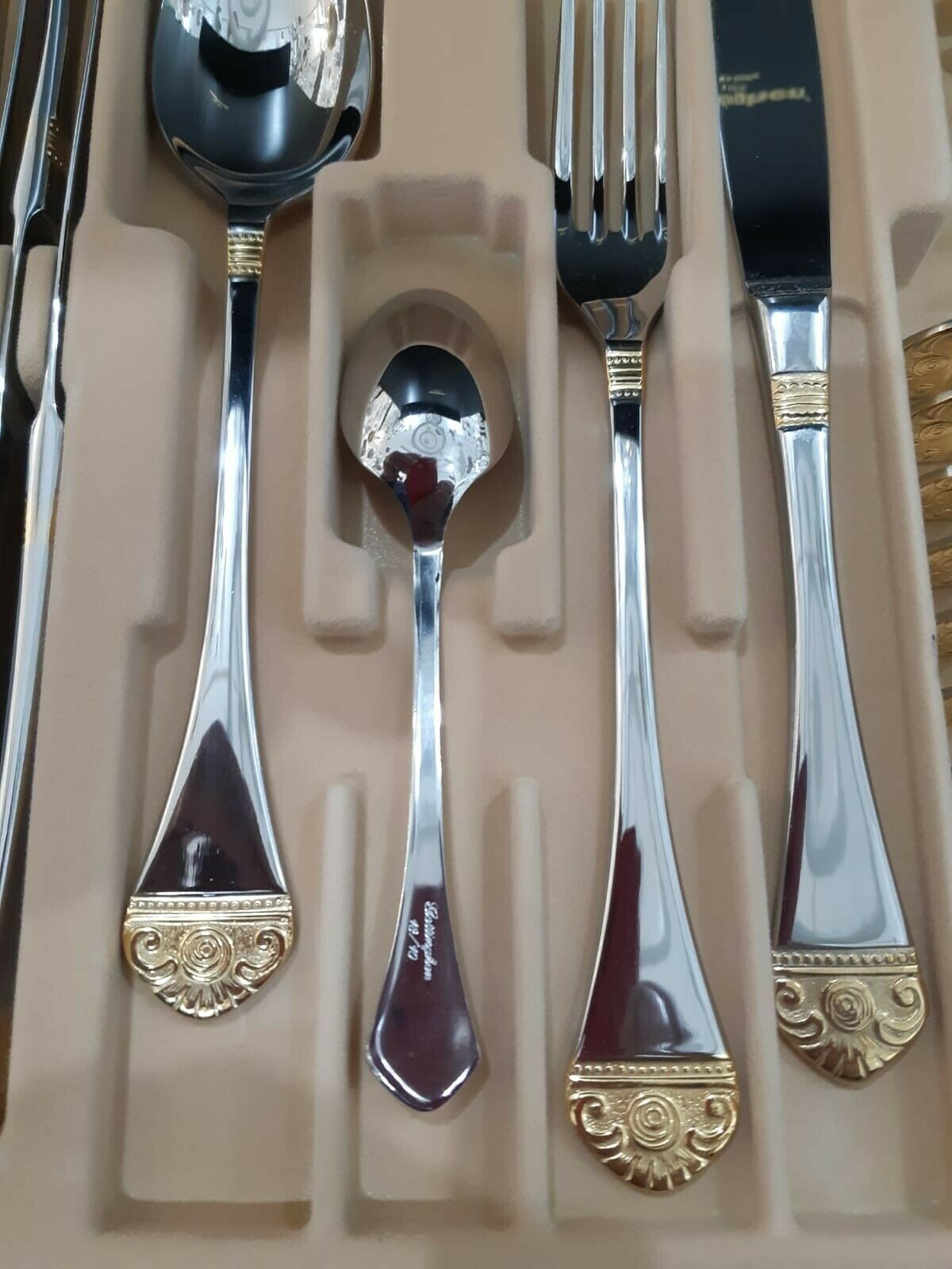 SERVIZIO DI POSATE 75 PEZZI IN ACCIAIO LUCIDO E LAMINA IN ORO