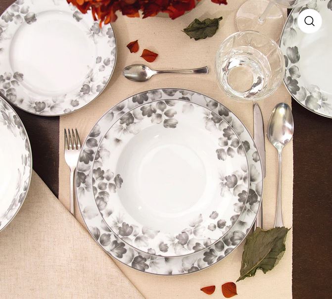 Servizio piatti Foliage – set da 6 completo dec floreale grigio