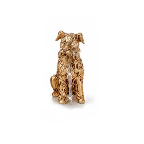 SNAUZER CANE SEDUTO IN CERAMICA FOGLIA ORO COLLARE E GUINZAGLIO IN CRISTALLI