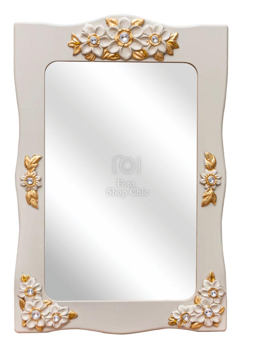 SPECCHIO IN LEGNO FIORI AVORIO E ORO