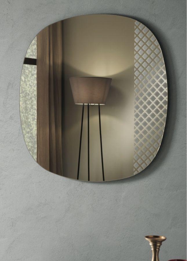 specchio moderno bronzo sagomato con decorazione sabbiata mis 96×96 cm