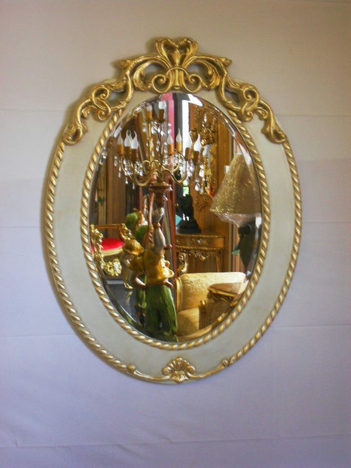 SPECCHIO OVALE DA PARETE IN LEGNO AVORIO ORO SOGGIORNO CAMERA DA LETTO