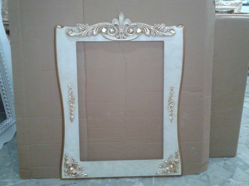 SPECCHIO SPECCHIERA RETTANGOLARE DA PARETE IN LEGNO AVORIO E FOGLIA ORO CONSOLLE