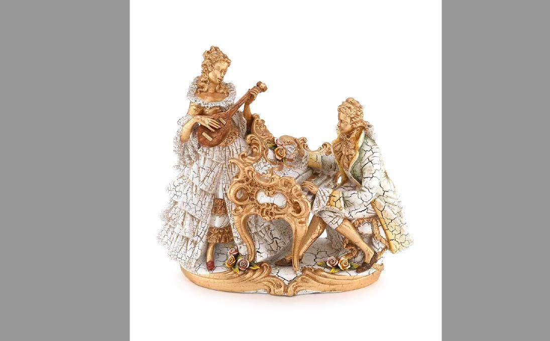 statua coppia Mozart piano e mandolino vesti colorate con fiori