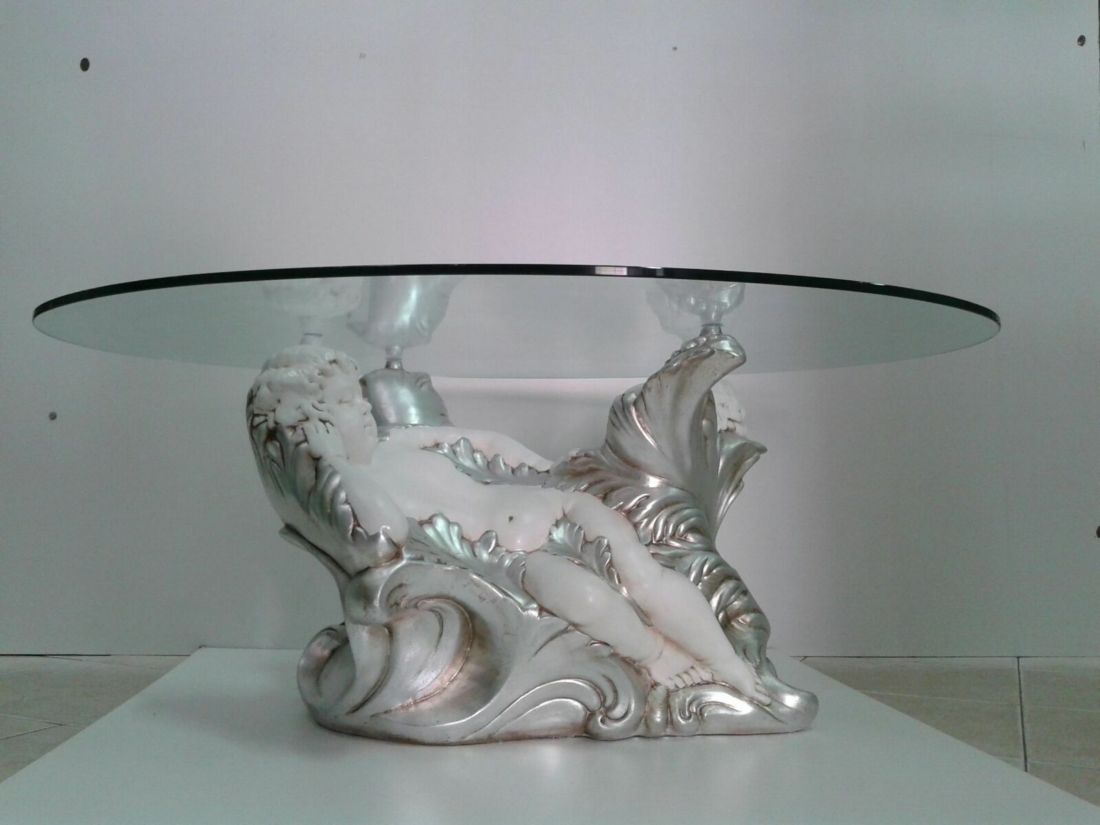 TAVOLINO ANGELI CERAMICA BIANCO FOGLIA ARGENTO ARREDO CASA SALOTTO SOGGIORNO