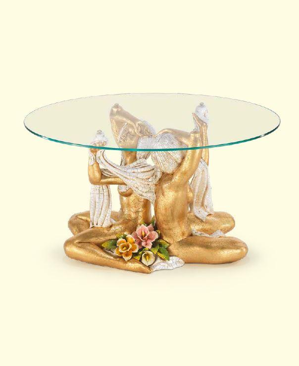 tavolino con donne e fiori in oro