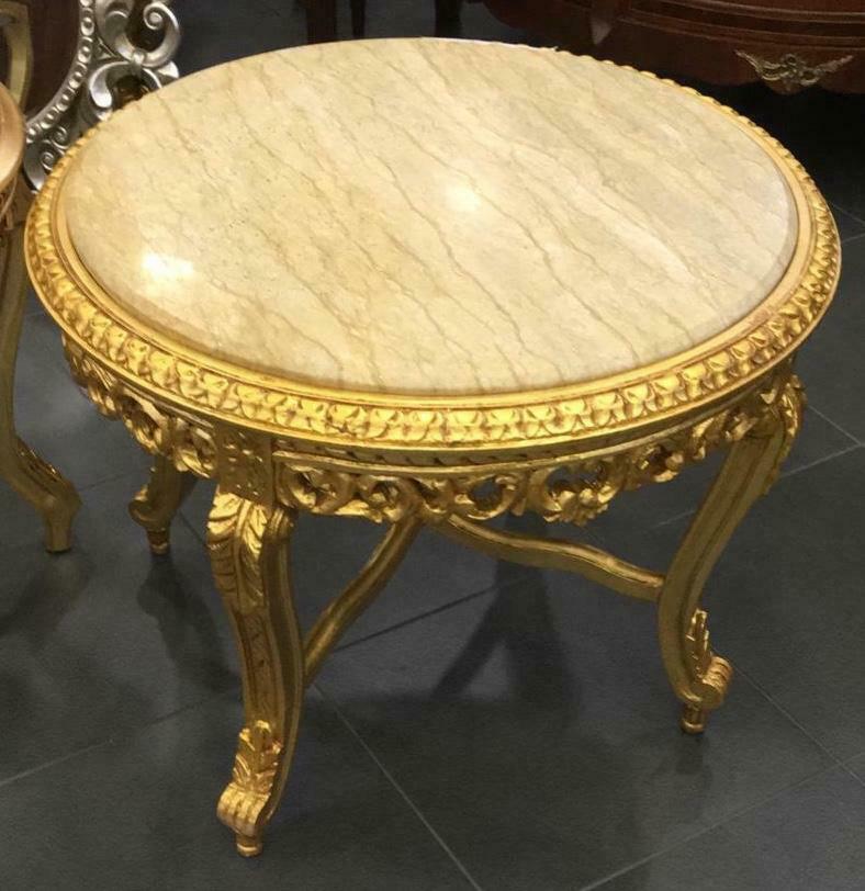 TAVOLINO DA SALOTTO IN LEGNO FOGLIA ORO CON MARMO 70×52 cm