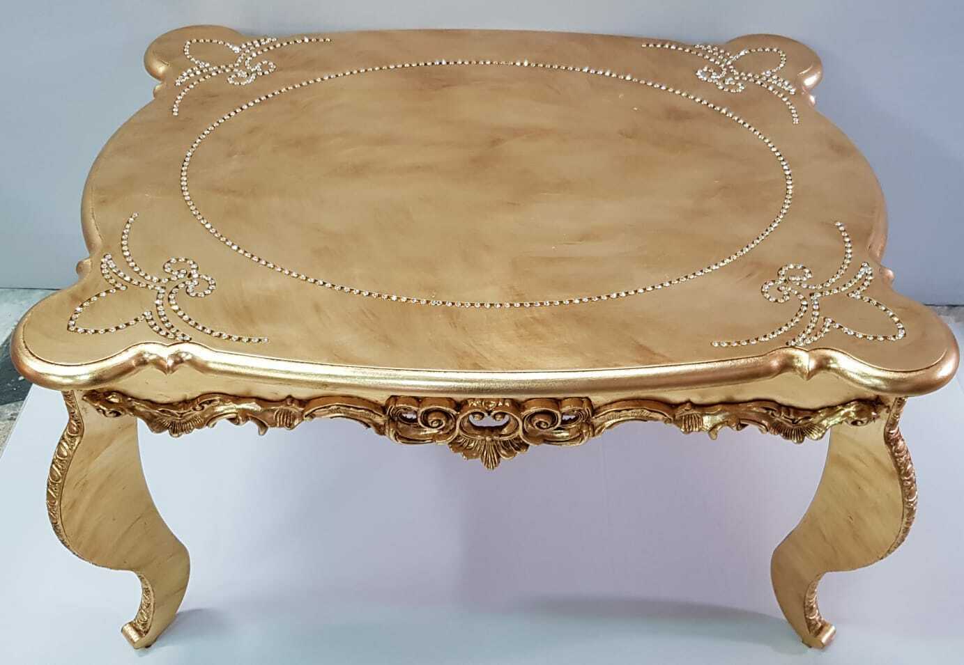 TAVOLINO DA SALOTTO RETTANGOLARE IN LEGNO ORO CON STRASS