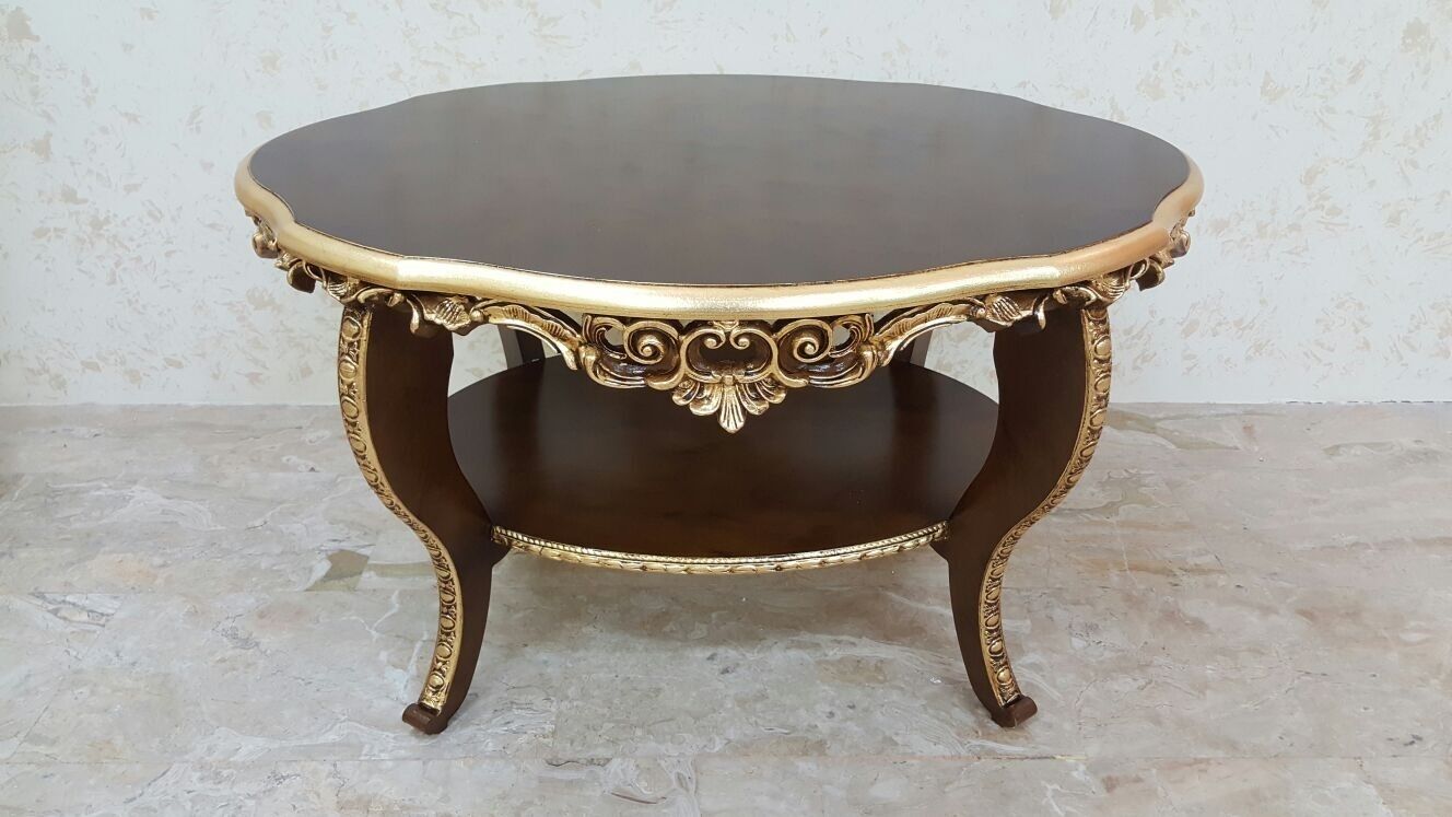 TAVOLINO SALOTTO OVALE LEGNO NOCE ORO MOBILI CAMERA ARREDO CASA SOGGIORNO