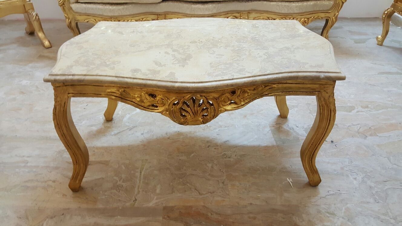 TAVOLINO SALOTTO RETTANGOLARE LEGNO FOGLIA ORO MARMO AVORIO ARRD. CASA SOGGIORNO