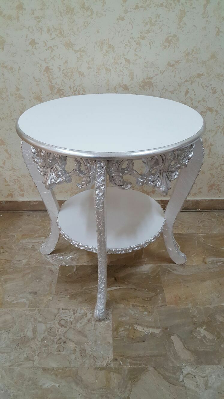 TAVOLINO TONDO LEGNO BIANCO E FOGLIA ARGENTO DA SALOTTO SOGGIORNO ARREDO CASA