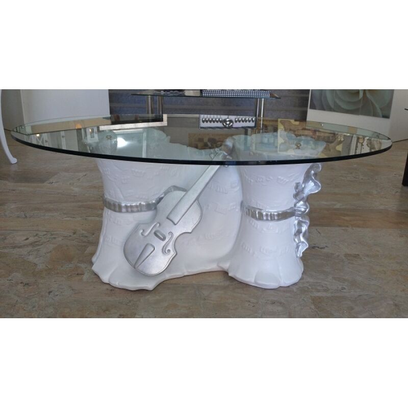 TAVOLINO VIOLINO IN CERAMICA DECORATO A MANO ARGENTO ARREDO CASA SOGGIORNO