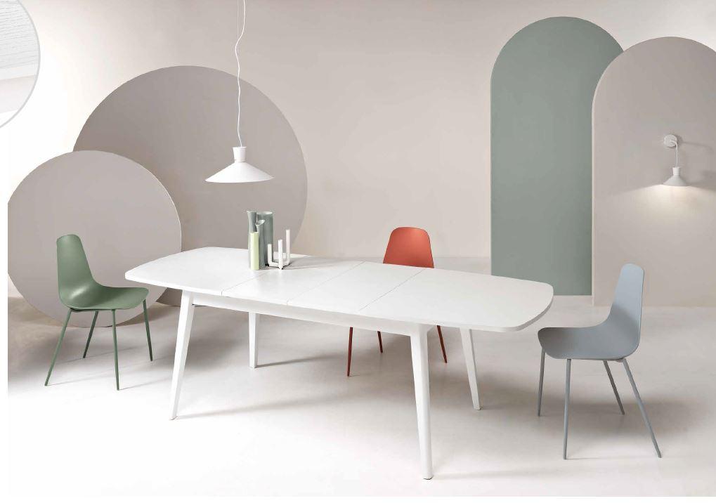 tavolo da pranzo moderno allungabile base bianca in metallo e piano bianco frassinato chiuso L 140 cm