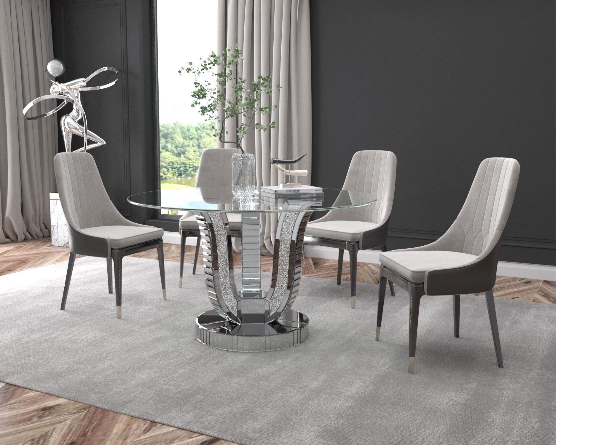 tavolo da pranzo rotondo moderno in vetro specchiato diam. 132 CM