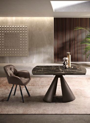 tavolo moderno allungabile a rotazione base marrone e piano effetto marmo marrone lucido chiuso L 140 cm fino a 200 cm (Copia)
