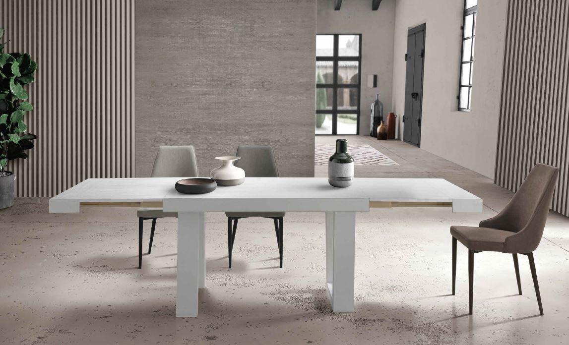 tavolo moderno allungabile base e piano bianco frassinato