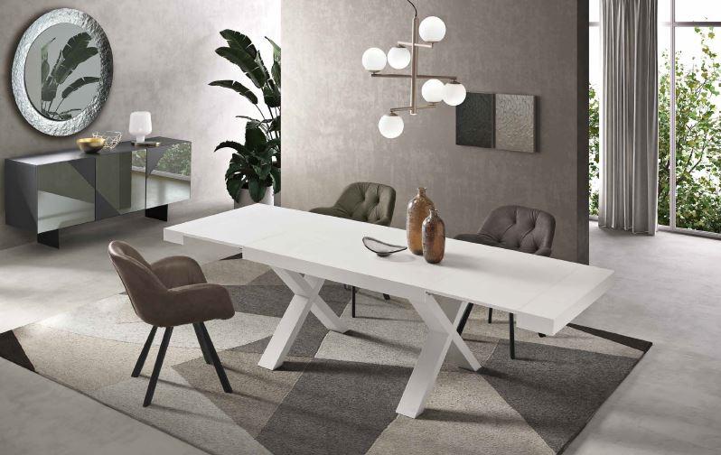 tavolo moderno allungabile base e piano in bianco frassinato chiuso L 160 cm fino al 260 cm