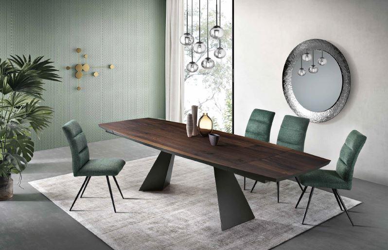 tavolo moderno allungabile base nera e piano in rovere termico chiuso L 200 cm fino al 300 cm