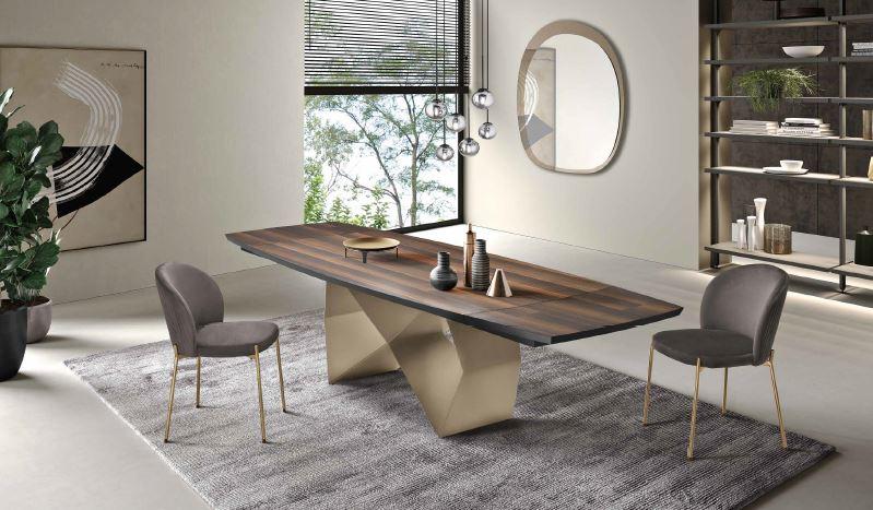 tavolo moderno allungabile base perla beije e piano eucalipto chiuso L 200 cm fino a 300 cm