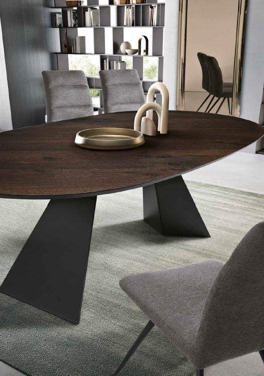 tavolo moderno ovale base nera e piano rovere termico effetto legno L 210 cm