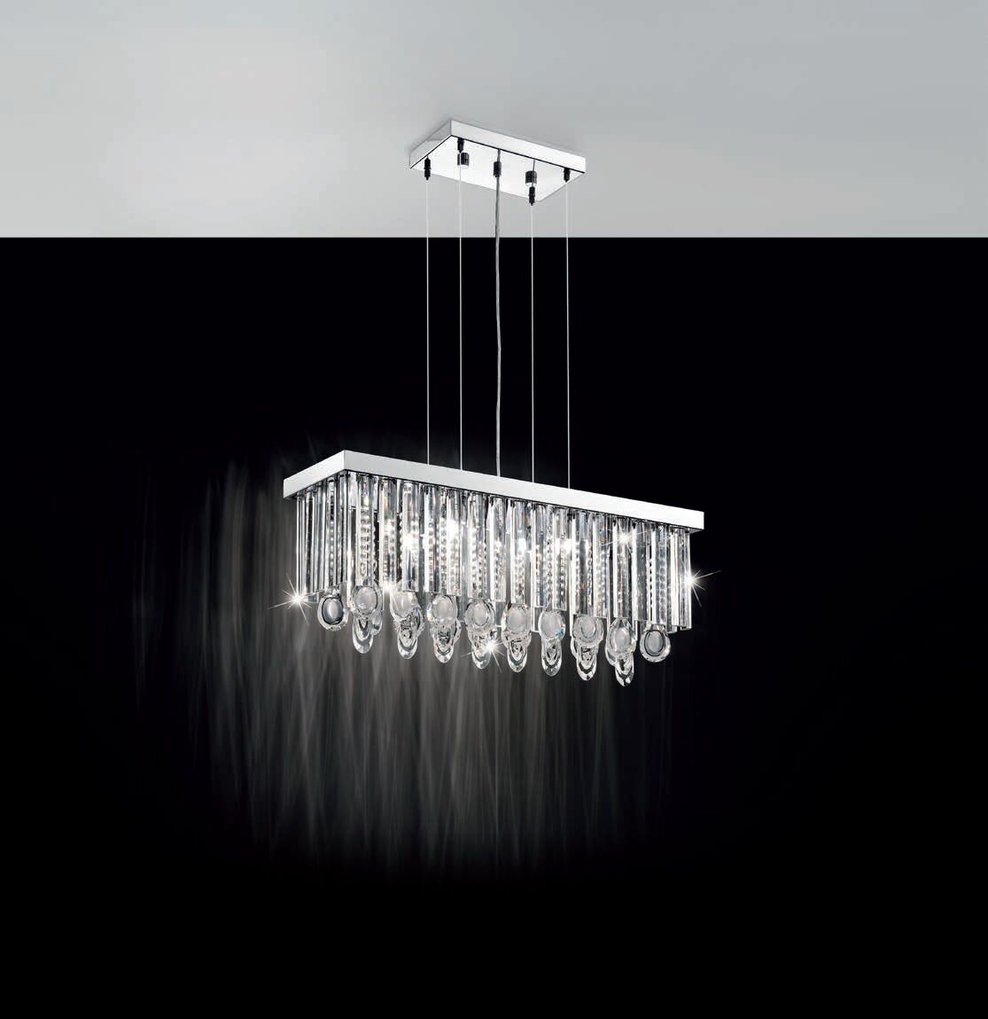THORBURN LAMPADARIO SOSPENSIONE MODERNO IN ACCIAIO CROMO CON CRISTALLI