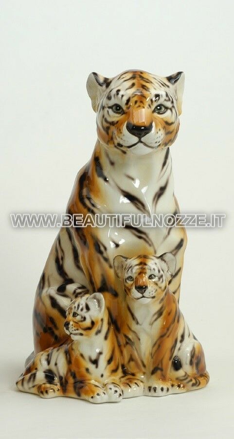 TIGROTTO CON CUCCIOLI IN CERAMICA TIGRATI PANTERA LEONE PUMA ARREDO CASA