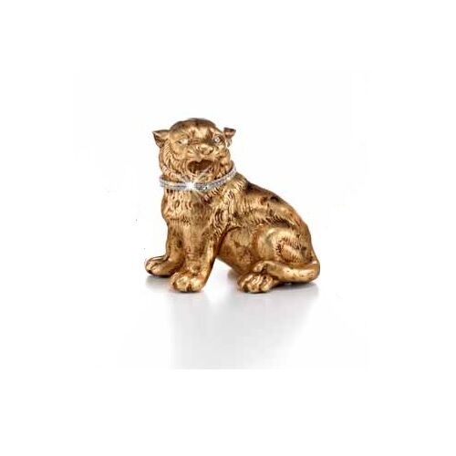 TIGROTTO SEDUTO CON BOCCA APERTA IN CERAMICA FOGLIA ORO CON CRISTALLI