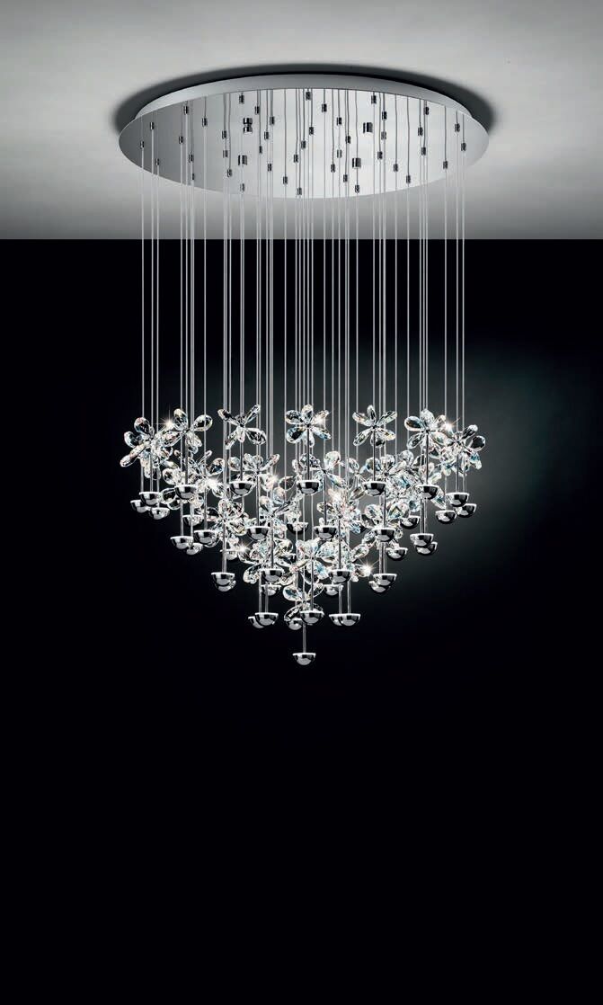 TONY LAMPADARIO SOSPENSIONE MODERNO IN ACCIAIO CROMO CON CRISTALLI 43X 2,5W LED