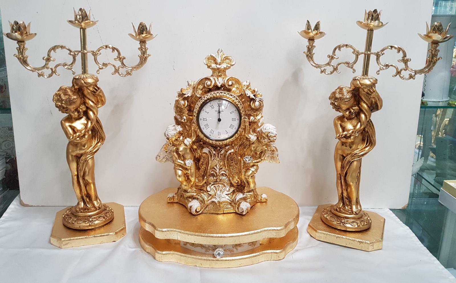 TRIS COPPIA CANDELIERI + OROLOGIO CON ANGELI A 3 FIAMME