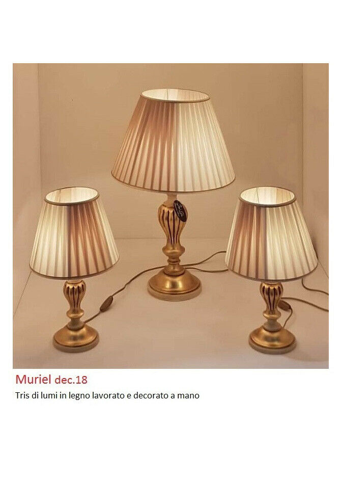 TRIS DI LUMI IN LEGNO COMPLETO DI PARALUMI ORO