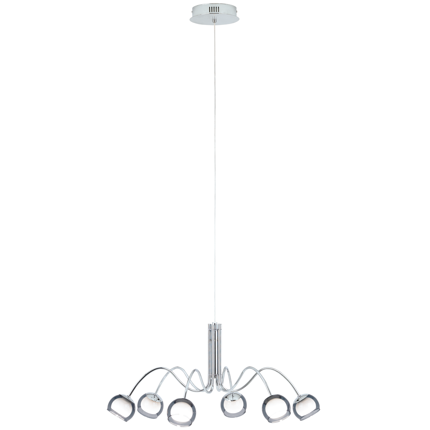 TRUEMAN LAMPADARIO SOSPENSIONE MODERNO ACCIAIO CROMO PARALUME VETRO 6X 3,3W LED
