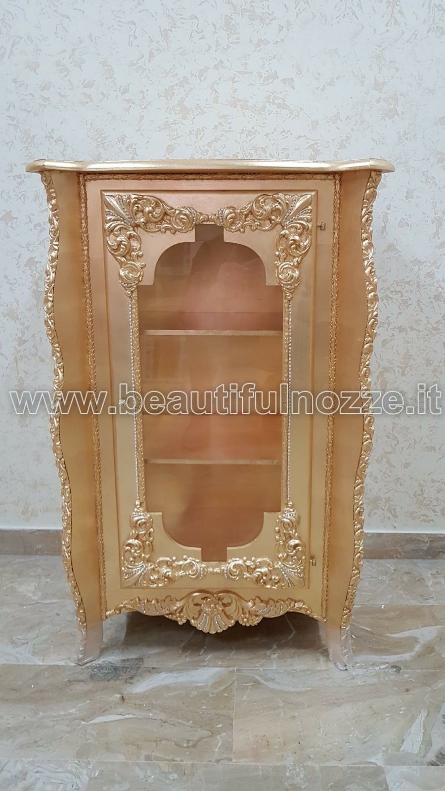 VETRINA 1 ANTA IN LEGNO FOGLIA ORO CON CRISTALLI ARREDO MOBILE