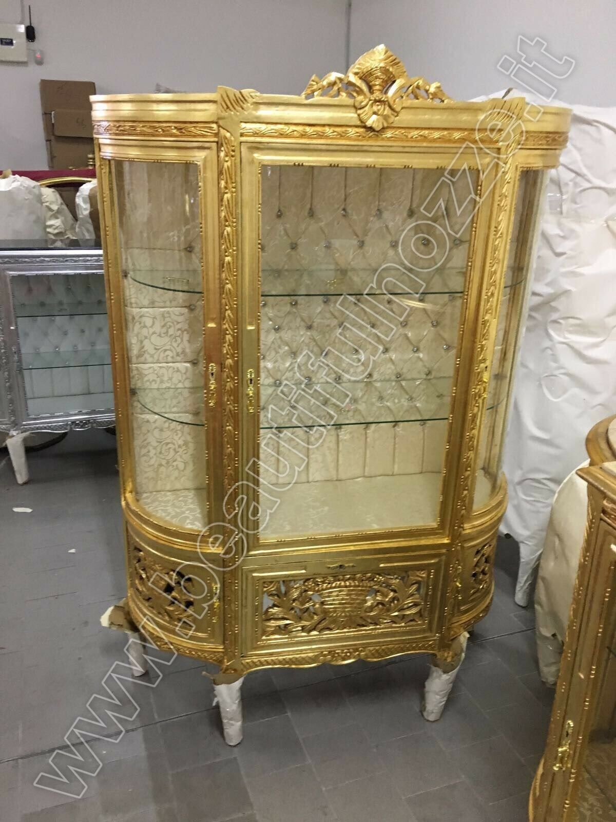 VETRINA 3 ANTE E 3 SPORTELLI IN LEGNO FOGLIA ORO