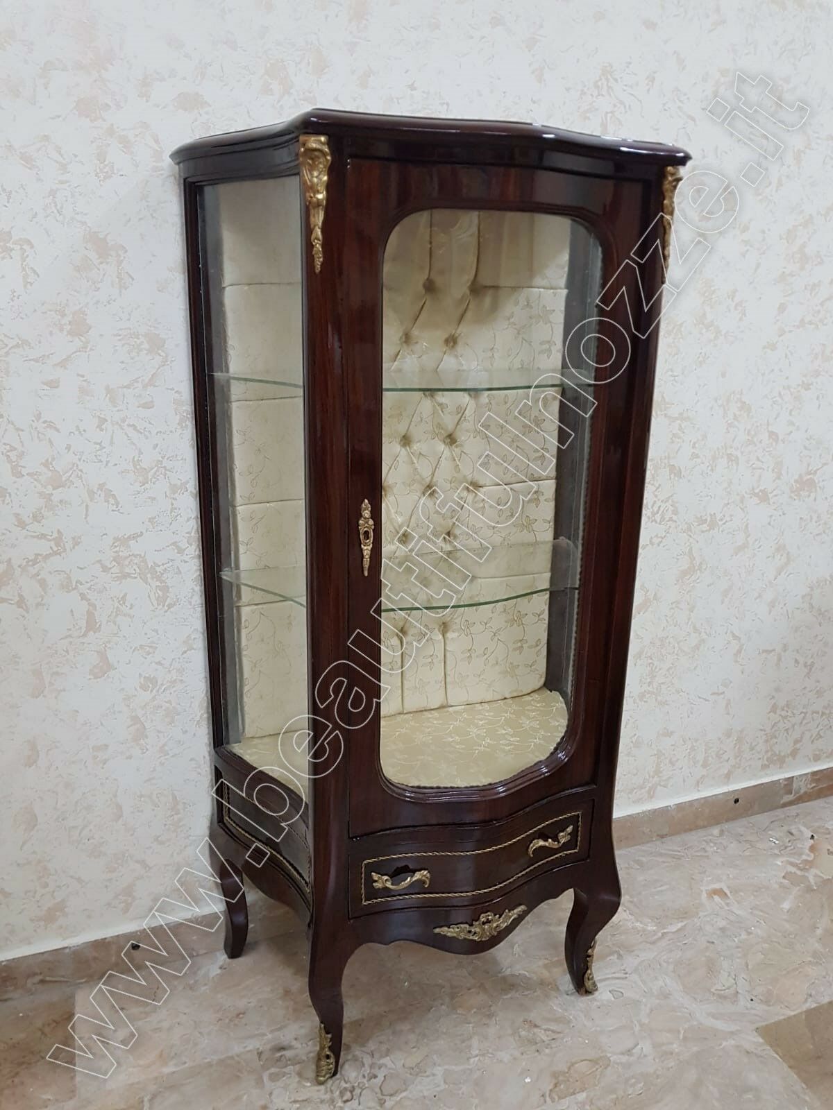 VETRINA A 1 ANTA IN LEGNO NOCE E FOGLIA ORO