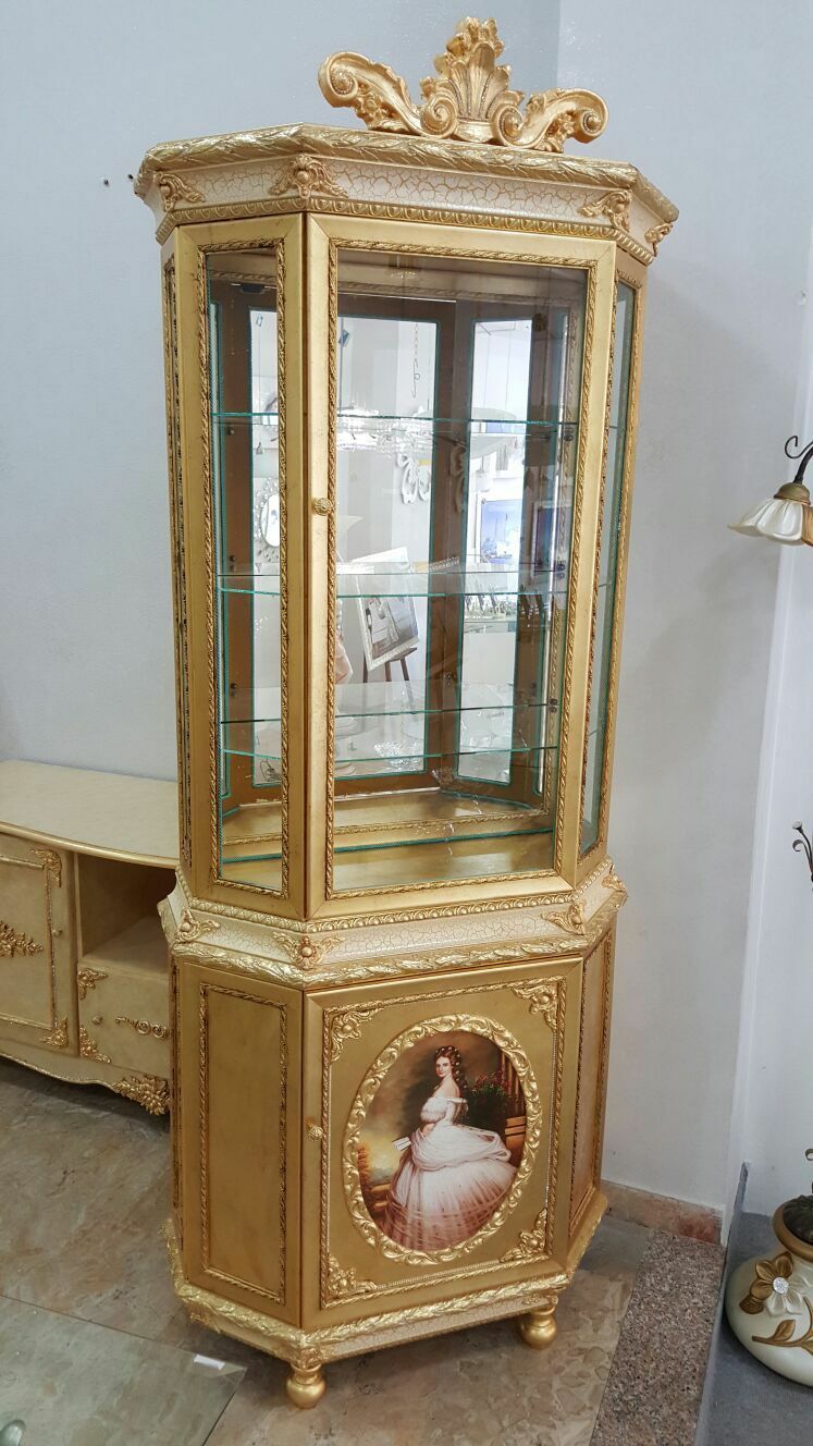 VETRINA LEGNO DECORO ORO PRINCIPESSA SISSI ENTRATINA ARREDO CASA SALOTTO