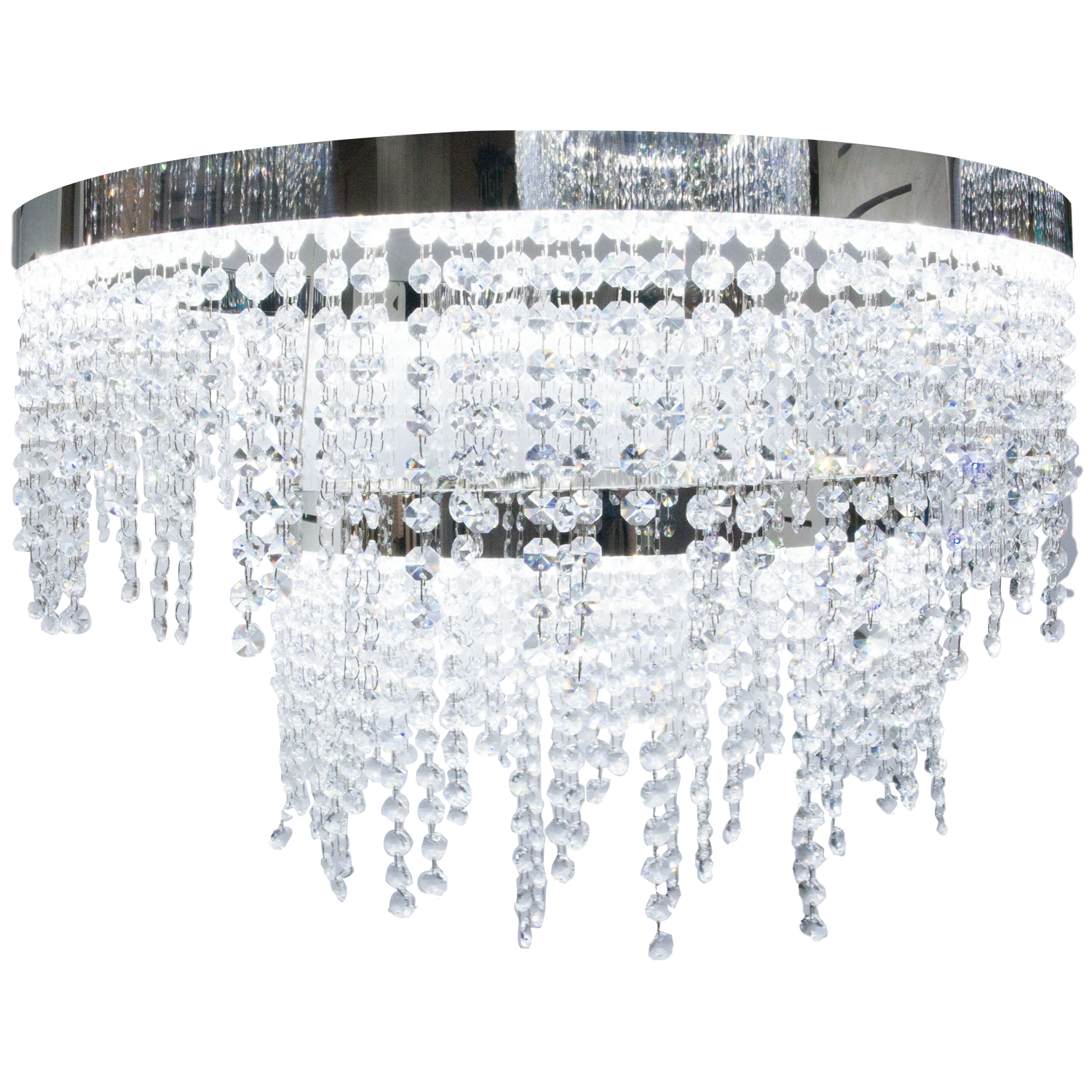 WOODROW LAMPADARIO SOSPENSIONE MODERNO IN ACCIAIO CROMO E CRISTALLI 46W LUCI LED